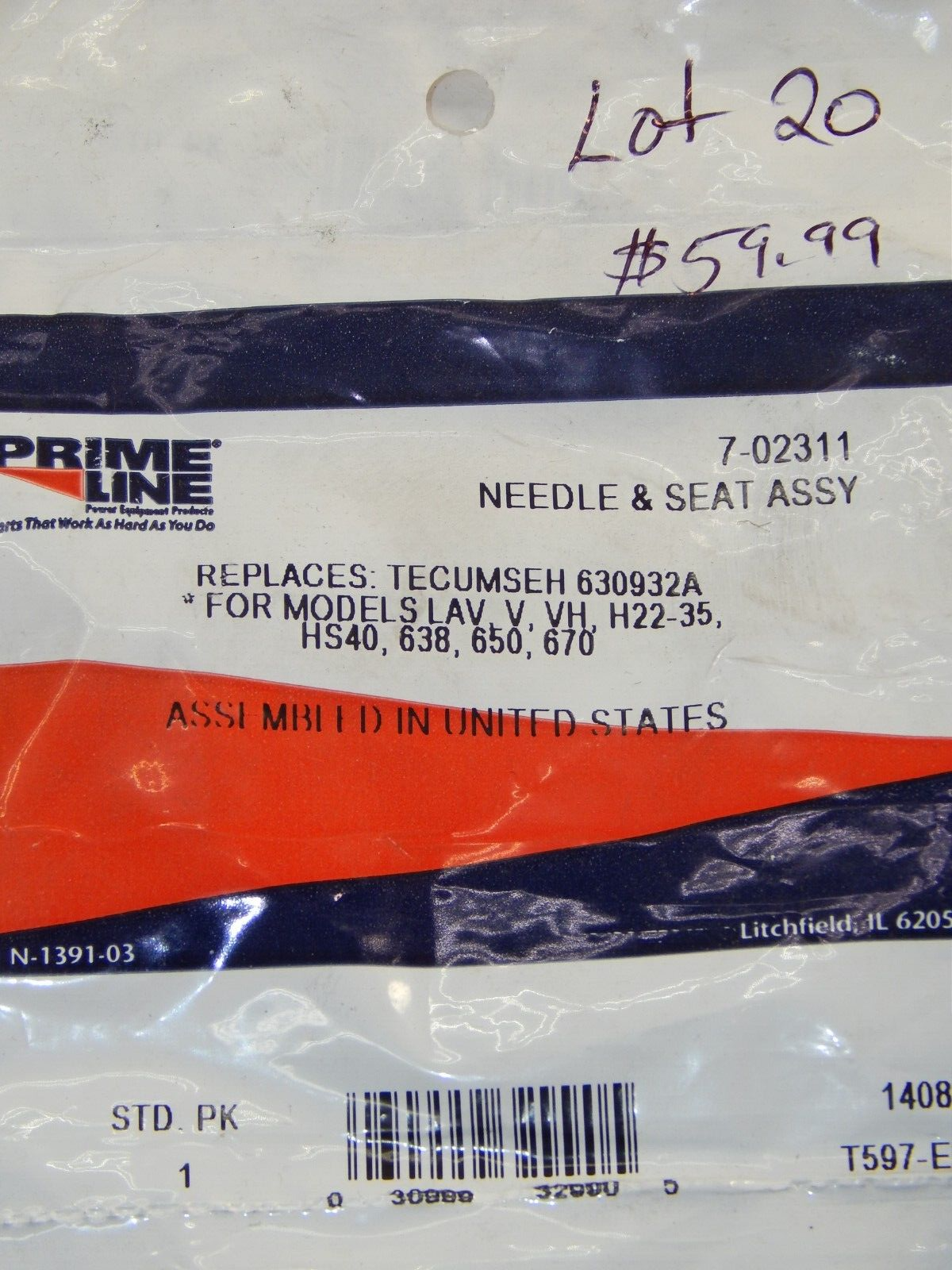 20 TECUMSEH CARBURETOR NEEDLE & SEAT KIT 630932A is a Prime LINE Products carburetor replacement part intended to help restore reliable operation on compatible lawn & garden equipment. Please verify part number/fitment before ordering.