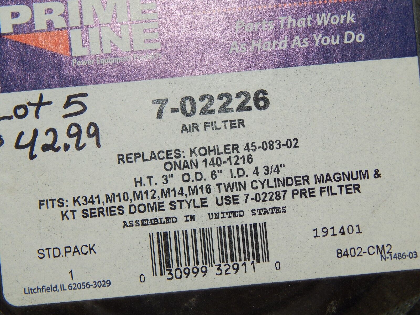 (5) KOHLER AIR FILTER 45 083 02 ALSO FITS ONAN 140-1216 is a replacement part for lawn tractor, mower, and small engine applications. Use the listed part number(s) to match your machine. Please verify part number/fitment before purchase.