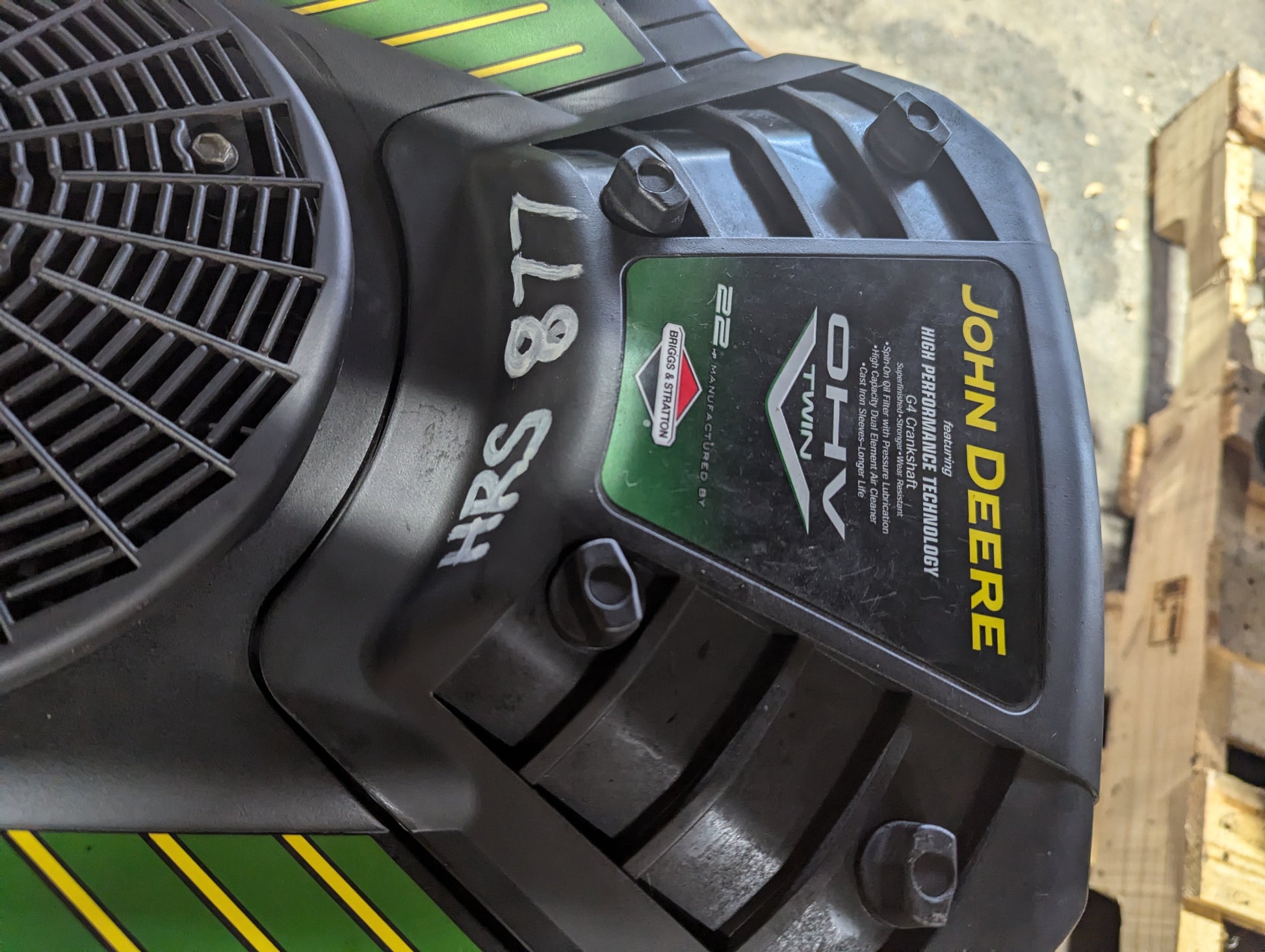 Briggs and Stratton model 441777 22hp Intek V-twin (877 hours) vertical crankshaft 1″x3″