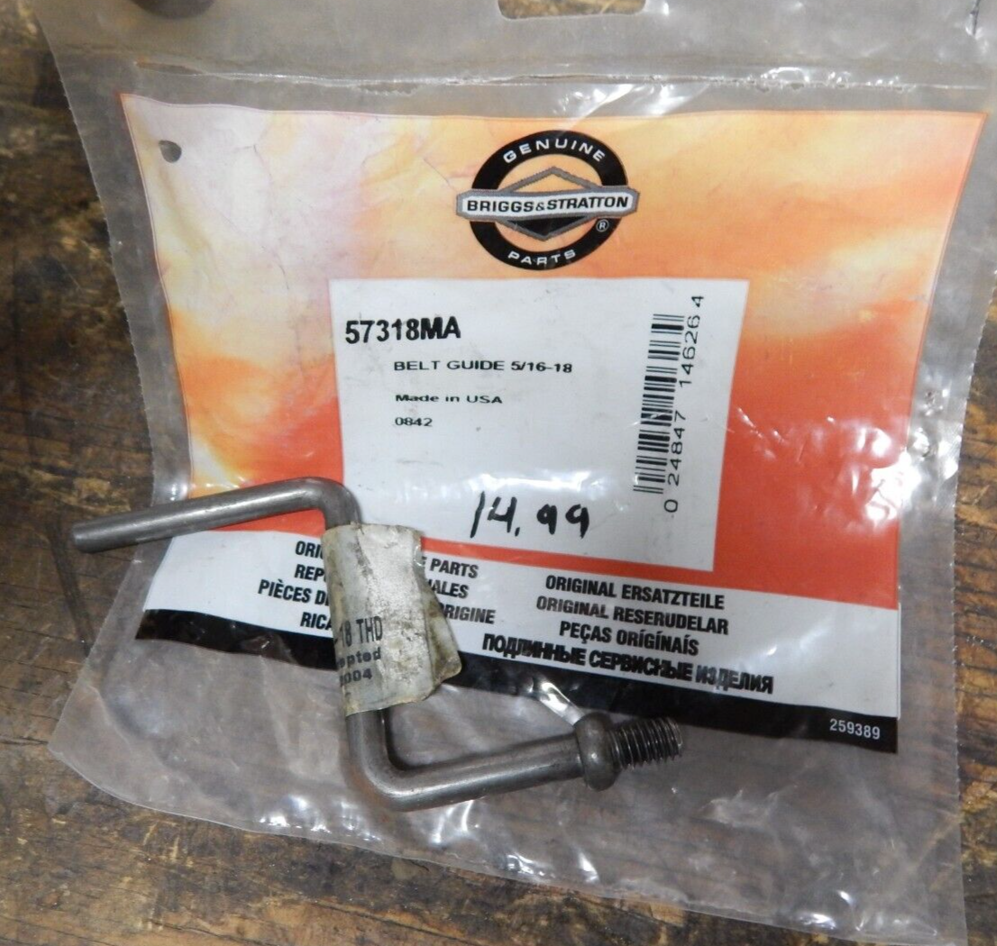 BRIGGS & STRATTON BELT GUIDE 57318MA is a used item for lawn & garden equipment. Please verify part number/fitment before ordering. Category defaulted due to low certainty after full-name parse