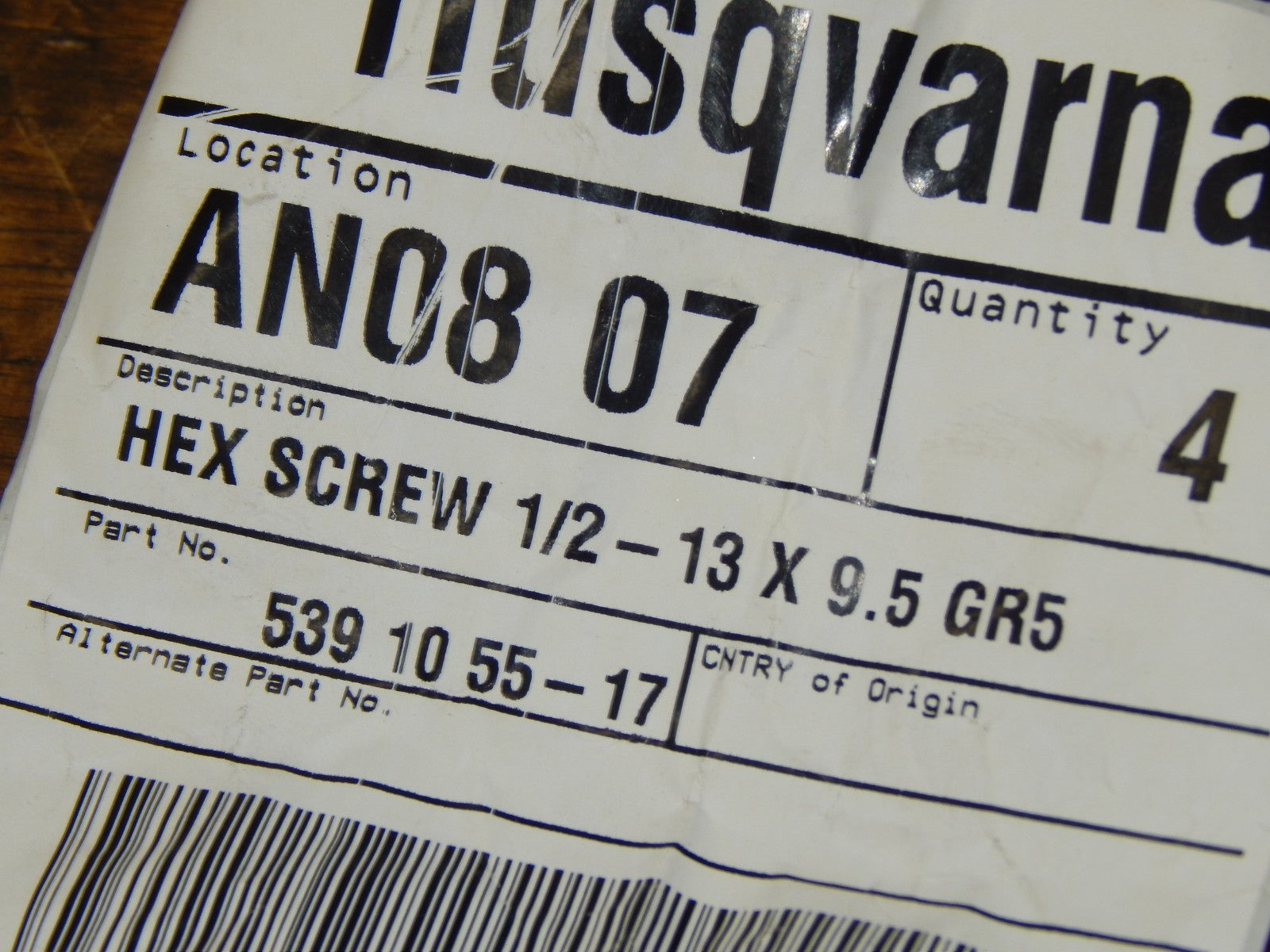 - Package contents: 1x Genuine AYP SEARS HUSQVARNA HEX SCREW 1/2-13 X 9.5 GR5 Part# 539105517 , 5949465 (as pictured)