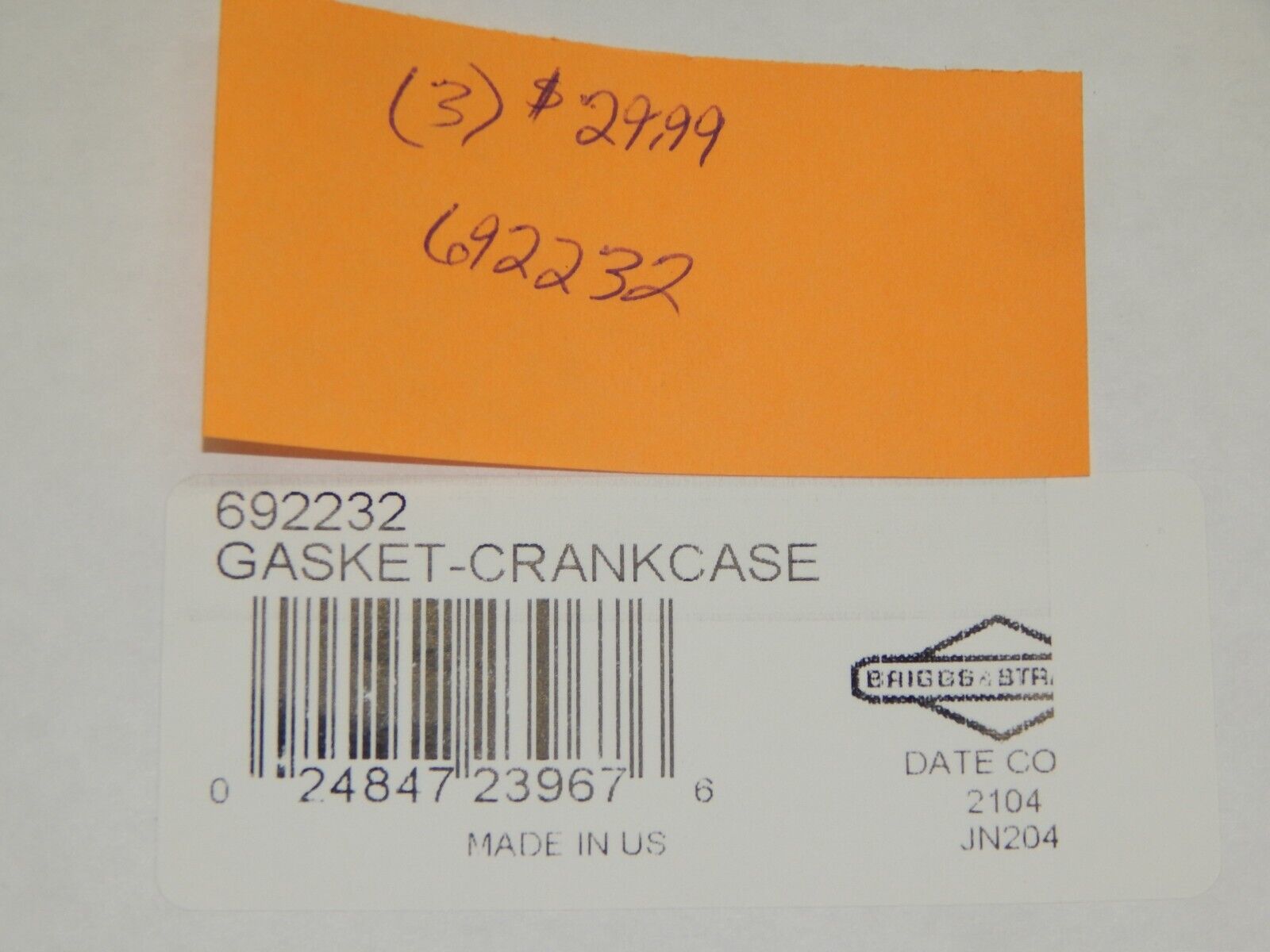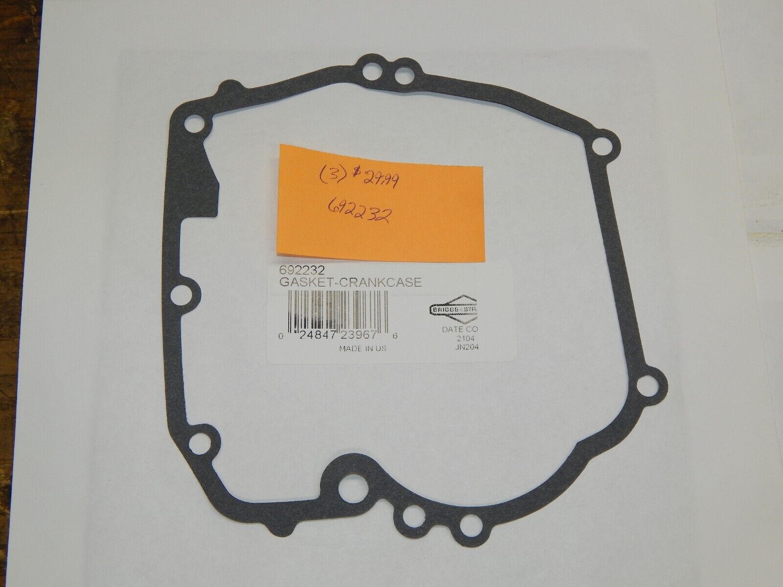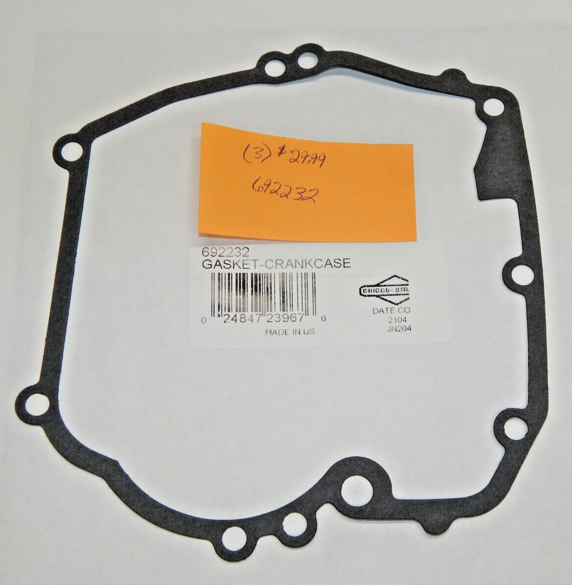 GENUINE OEM BRIGGS & STRATTON SET OF THREE CRANKCASE GASKET 692232 is a replacement part for lawn tractor, mower, and small engine applications. Use the listed part number(s) to match your machine. Please verify part number/fitment before purchase.