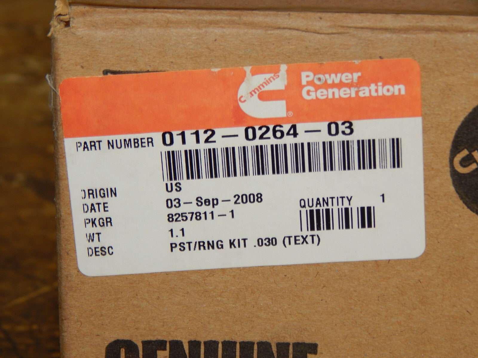 Genuine OEM Onan 112-0264-03 Piston and Ring Kit