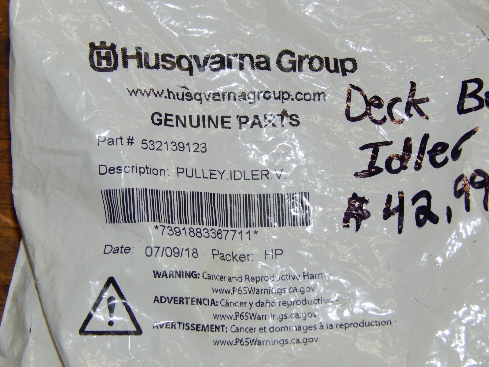 Husqvarna Deck Belt Idler 532139123 is a Husqvarna deck belts replacement part intended to help restore reliable operation on compatible lawn & garden equipment. Please verify part numbers and fitment details before ordering.