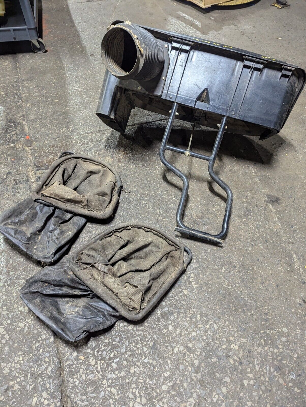 John Deere GT262, GT275, 325,335,345 Rear Bagger Lid, Tube, Bags (2)