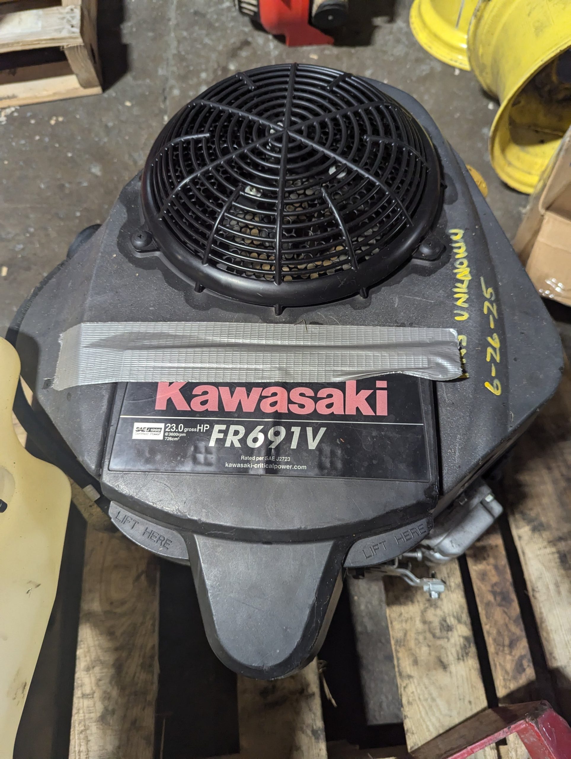 Kawasaki FR691V (23hp) vertical crankshaft 1″x3″ crankshaft (hours unknown)