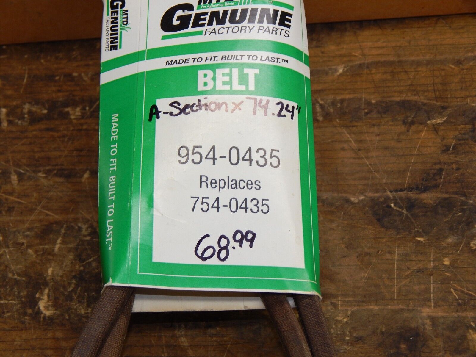 OEM MTD A-Section x74.24″ 954-0435 754-0435 is a MTD fasteners and assortments replacement part intended to help restore reliable operation on compatible lawn & garden equipment. Please verify part numbers and fitment details before ordering.