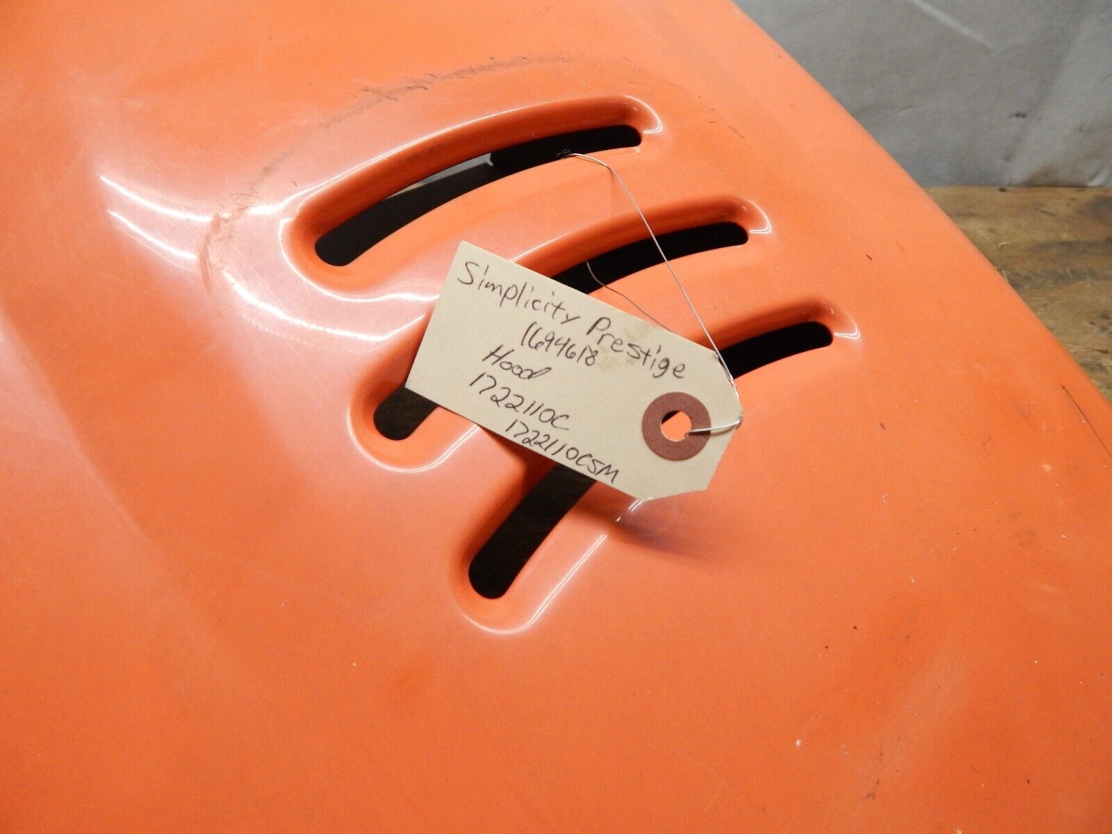 OEM Simplicity Prestige 1694618 Hood (Top Only) 1722110C, 1722110CSM is a Simplicity batteries replacement part intended to help restore reliable operation on compatible lawn & garden equipment. Please verify part numbers and fitment details before ordering.
